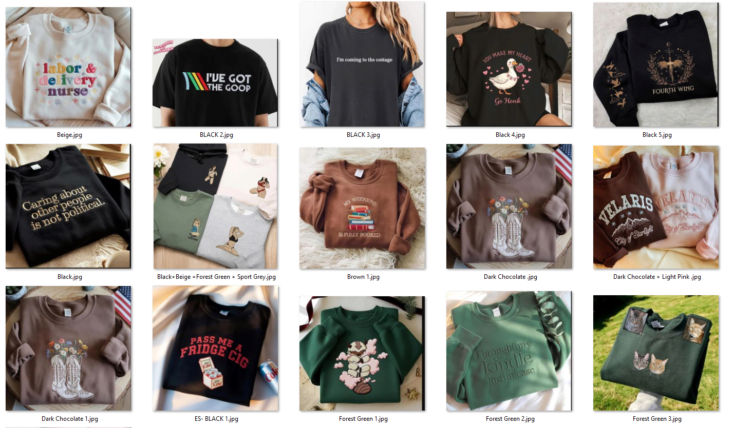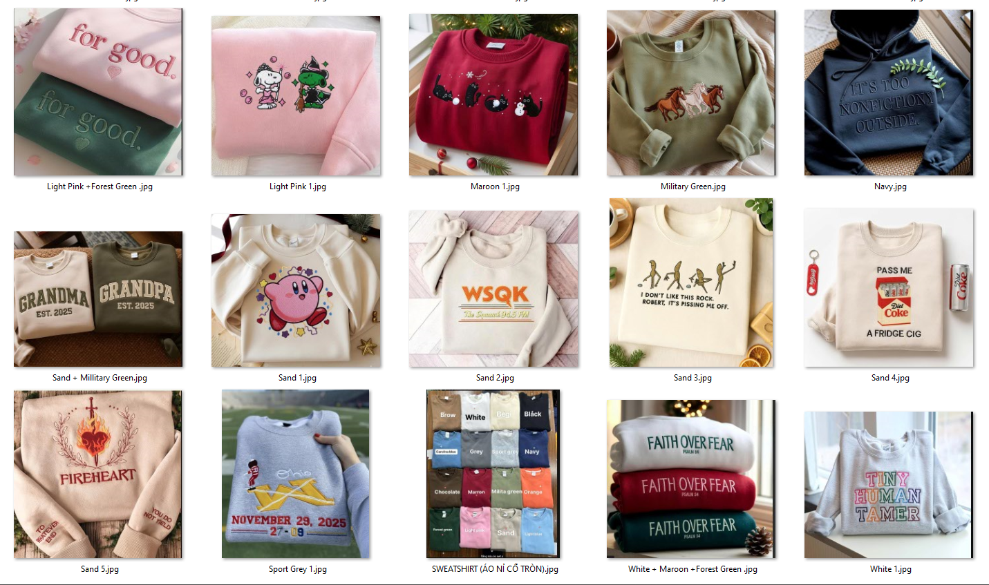 Bảng màu áo nỉ cổ tròn (Sweatshirt)- Mẫu thêu tự chọn