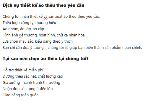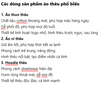 Áo Thêu Theo Yêu Cầu – Độc Đáo, Cá Tính, Chuẩn Phong Cách RiêngÁo thêu là gì? Vì sao đang trở thành xu hướng?Áo thêu là dòng sản phẩm sử dụng kỹ thuật thêu vi tính để tạo nên hình ảnh, logo hoặc thông điệp trực tiếp trên vải. So với in thông thường, áo thêu mang lại độ bền cao, hình ảnh sắc nét và thể hiện sự tinh tế, sang trọng.Trong những năm gần đây, áo thêu (áo thun thêu, áo nỉ thêu, hoodie thêu) đang trở thành xu hướng thời trang được nhiều người yêu thích bởi khả năng thiết kế theo yêu cầu và thể hiện cá tính riêng.Ưu điểm nổi bật của áo thêuĐộc đáo, không đụng hàng: Mỗi thiết kế là một sản phẩm riêng biệt theo ý tưởng của bạnBền đẹp theo thời gian: Hình thêu không bong tróc, không phai màu như inTính thẩm mỹ cao: Đường thêu nổi tạo cảm giác sang trọng, tinh tếĐa dạng mẫu mã: Từ dễ thương, tối giản đến cá tính, vintagePhù hợp nhiều mục đích: Mặc hàng ngày, làm đồng phục, quà tặng, áo nhóm